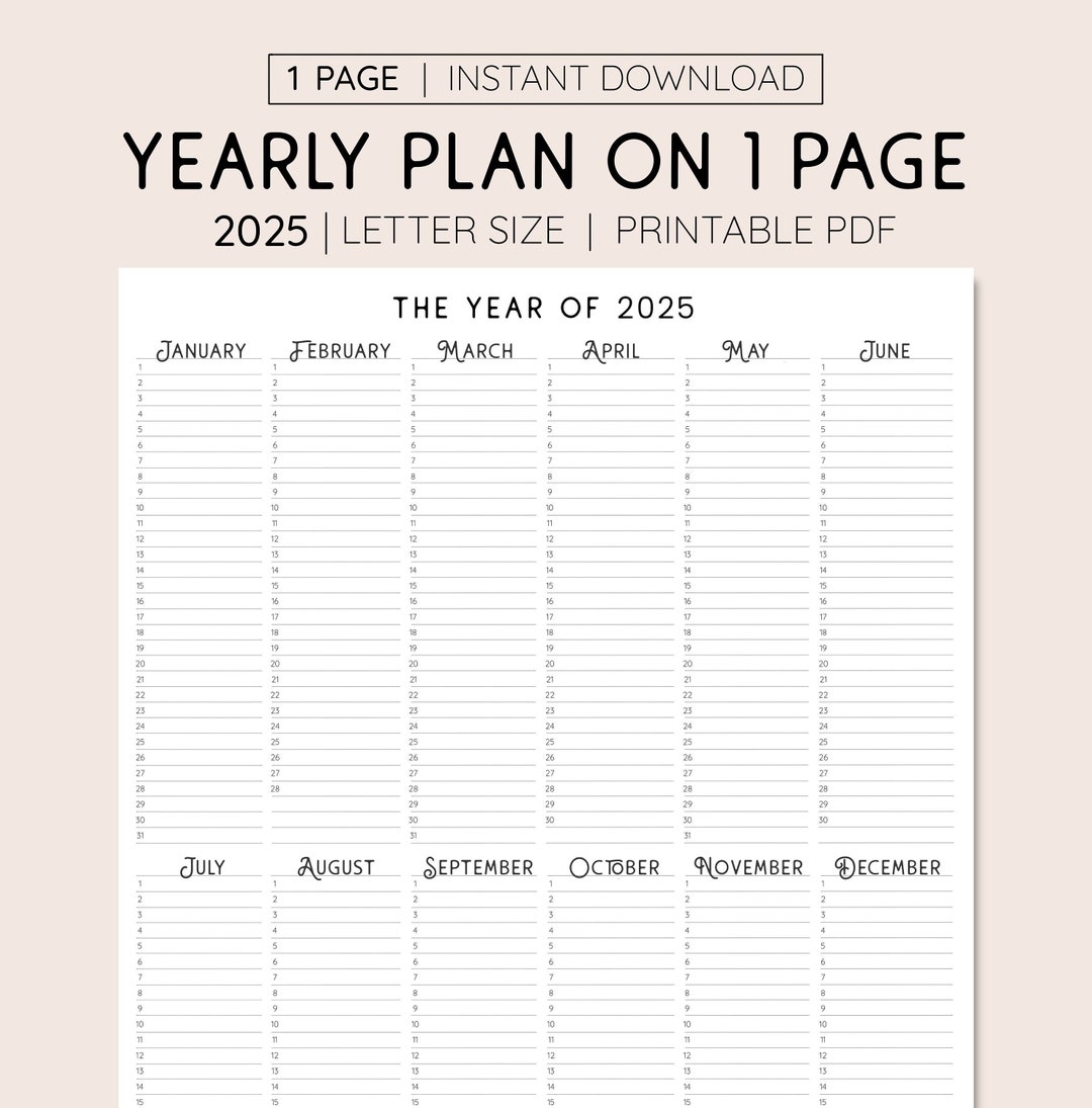 2025 Year At A Glance Printable Calendar PDF Etsy